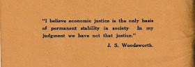 The second part is notable for, among other things, Woodsworth's defense of the rights of Communists and protesting in parliament the imprisonment of several Communist leaders (which would have included Tim Buck) in Kingston, as well as his very positive impressions of the Soviet Union after his trip to it. The fifth section should also be read through the lens of his pacifism.