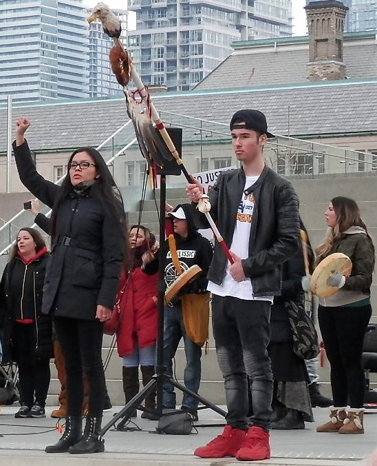 At the rally activists such Eve Saint, Vanessa and Beze Gray, CBC broadcaster and writer Jesse Wente and others spoke of the need for all Canadians to stand up against these continued injustices. Speaker after speaker emphasized that the damage to the environment caused by the energy sector
