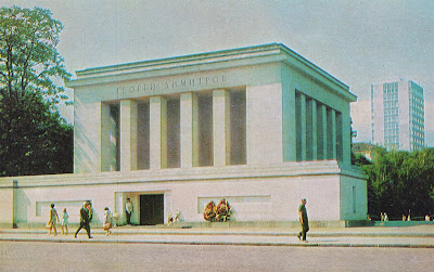 There are a large number of streetscapes -- of which we are very fond here on The Left Chapter -- as well as photos of new housing developments, monuments, and famous landmarks like the Alexander Nevsky Cathedral. Among these is a photo of the Georgi Dimitrov Mausoleum which was constructed in honour of the famed Communist and anti-fascist leader after his death in 1949. Despite the opposition of two-thirds of the country's population the mausoleum was destroyed in 1999 by a right wing government.